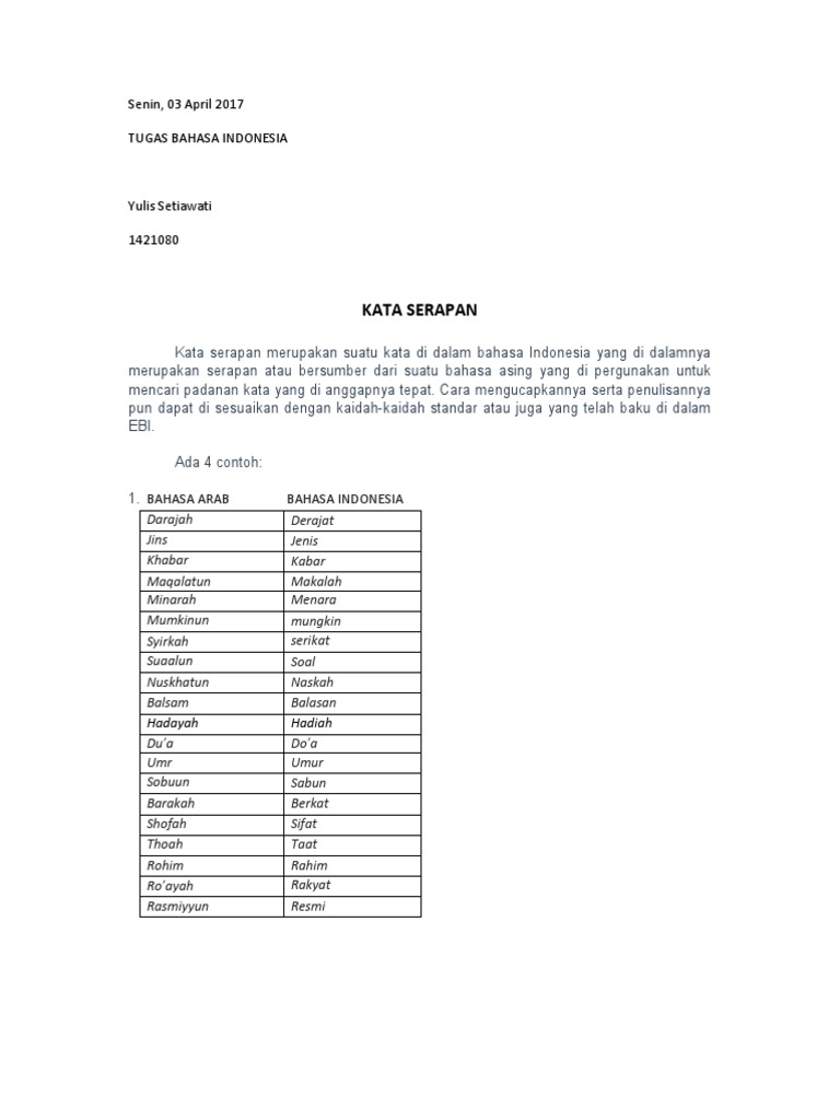 Daftar Kata Serapan Dalam Bahasa Indonesia Daftar Kata Serapan Dari