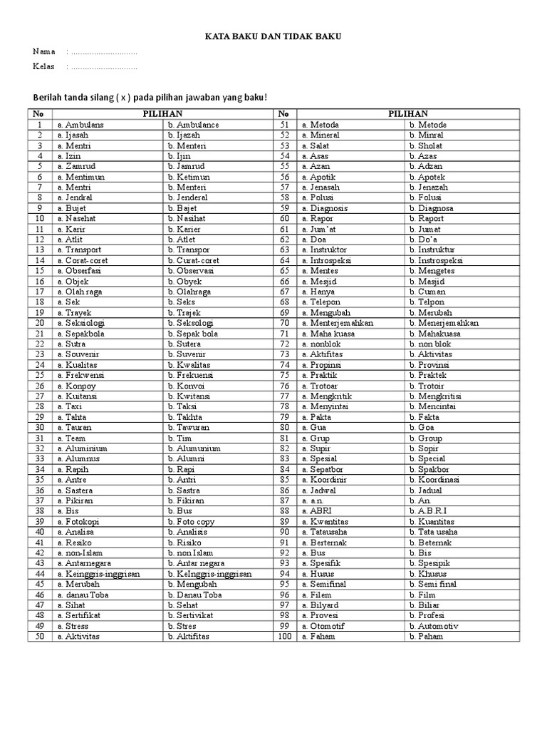 Daftar Kata Baku Dan Tidak Baku Brainly Co Id