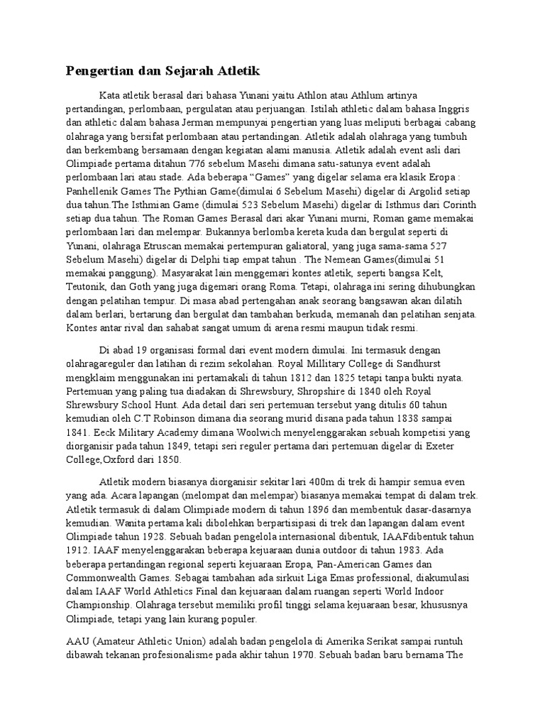 Jelaskan Sejarah Atletik Secara Ringkas Brainly Co Id