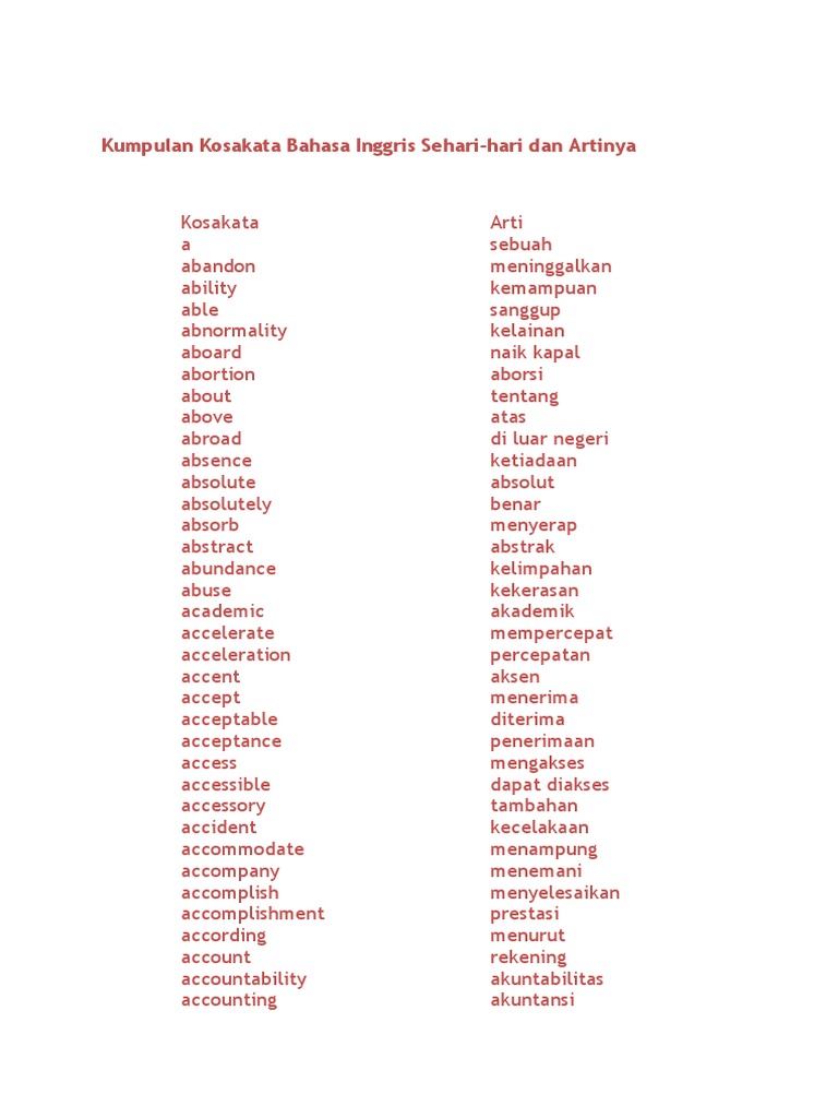 2200 Kosakata Bahasa Inggris Dan Artinya Yang Paling Sering Digunakan