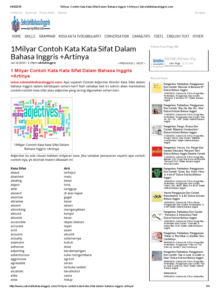 1milyar Contoh Kata Kata Sifat Dalam Bahasa Inggris Artinya