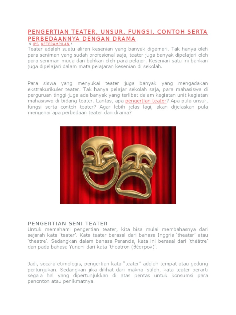 Pengertian Fungsi Unsur Dan Jenis Seni Teater Ilmu Pengetahuan