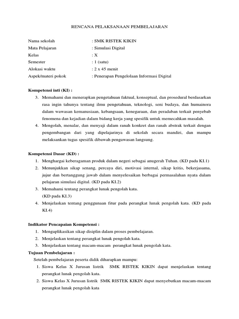 Rpp Tik Kelas X Semester 1 Dan 2 Baru