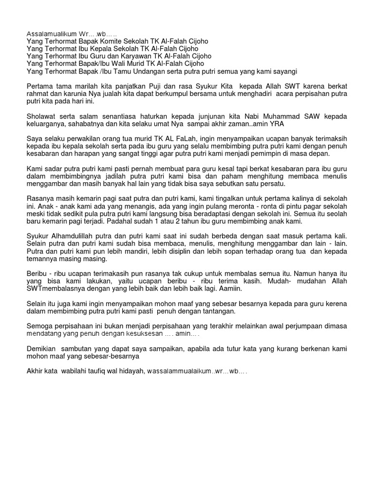 Surat Ucapan Terima Kasih Kepada Para Guru Taman Kanak Kanak Surat