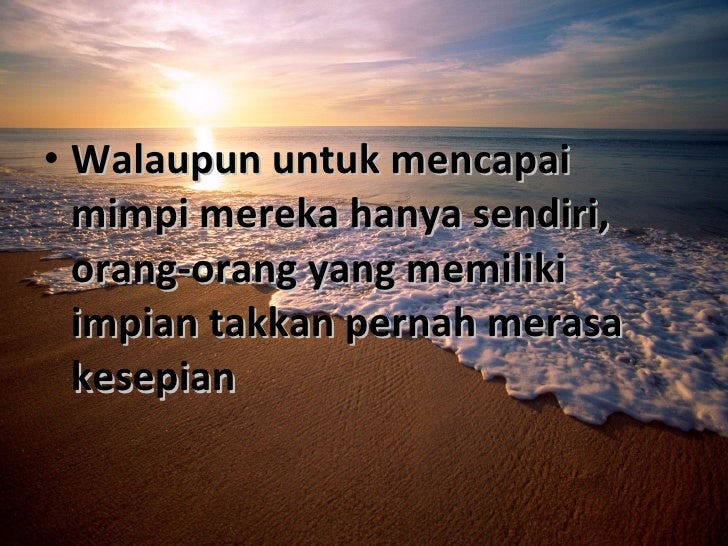 Berikut ini demi mendukung motivasi tinggi untuk berhasil maka ada kata kata mutiara impian dan harapan yang sangat cocok untuk anda terapkan di dalam kehidupan sehari hari. Penuh lubang lubang kecil yang tak terlihat dimataku. Categories kata mutiara post navigation leave a comment cancel reply.