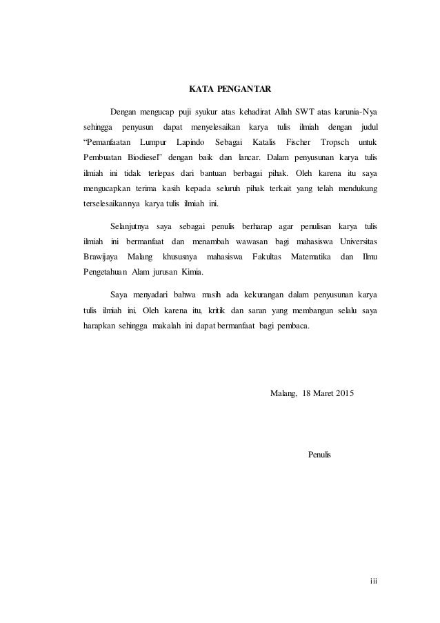 Selain itu ada juga bagian buku atau makalah yang tidak kalah penting seperti daftar isi daftar pustaka dan lain lainnya yang secara tidak langsung akan mempengaruhi profesionalitas karya yang ditulis. Contoh kata pengantar karya ilmiah contoh kata pengantar karya ilmiah. Dengan memanjatkan puji dan syukur kehadirat allah swt atas segala limpahan rahmat dan karunia nya kami dapat menyusun karya tulis ini yang berjudul upaya pencegahan dampak global warming dengan baik.