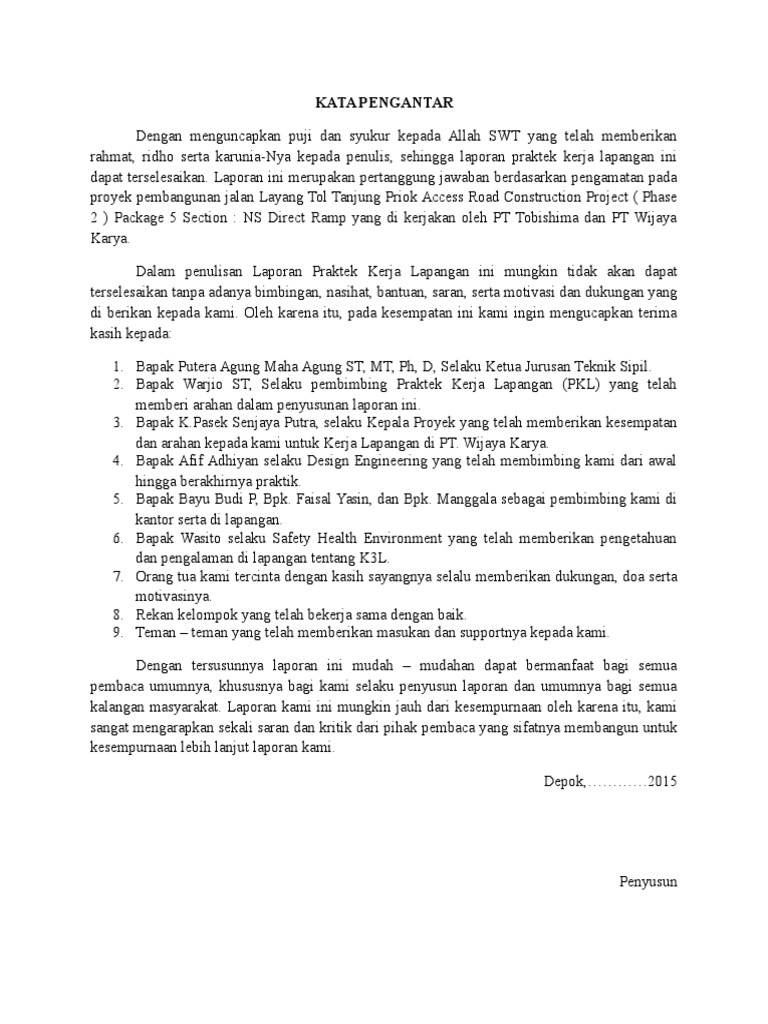 5 komentar pada contoh kata pengantar hasil praktek kerja lapangan pkl bagi anda yang telah menyelesaikan kegiatan praktek kerja lapangan atau pkl pasti diwajibkan untuk membuat laporan hasil kegiatan tersebut untuk dievaluasi oleh pihak sekolah. Yang sebelumnya kami sudah memberikan contoh kata pengantar untuk makalah contoh kata pengantar buku contoh kata pengantar proposal contoh kata pengantar skripsi kegiatan dan penelitian.