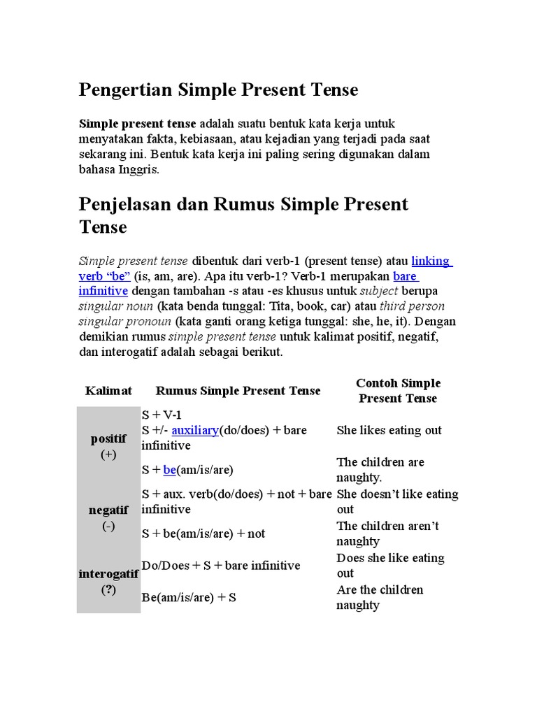 Serupa dengan simple present tense bentuk ini merupakan salah satu tense yang paling dasar dan sering digunakan pada saat penulisan atau percakapan dalam bahasa inggris. Pengertian simple present tense.