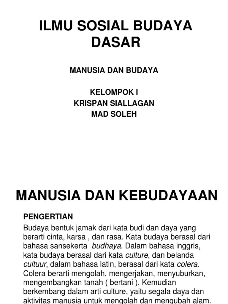 Arti budaya secara etimologis kata budaya berasal dari bahasa sansekerta buddhayah yang diartikan sebagai hal hal yang dikaitkan dengan budi dan akal manusia sinonimnya adalah kultur yang berasal dari bahasa inggris culture atau cultuur dari bahasa belanda. Dalam perkembangan yang ada kata seni dan budaya memiliki banyak arti yang dikemukakan oleh beberapa ahli.