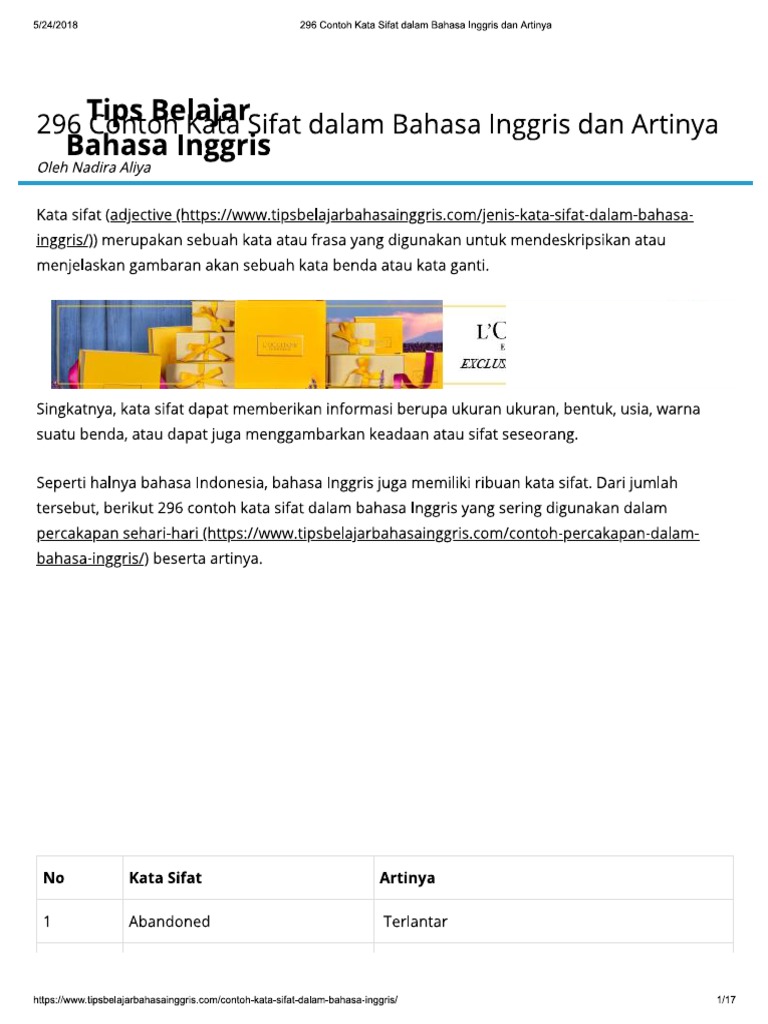 Dalam mencari daftar contoh kata sifat dalam bahasa inggris dan artinya tentu saja tidaklah sulit sekarang ini.