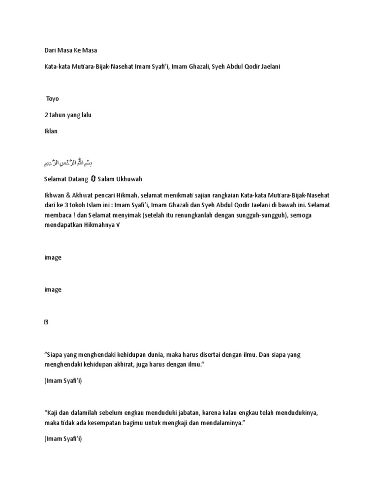 Kumpulan Kata Bijak Imam Syafii Imam Alghozali Programu Za