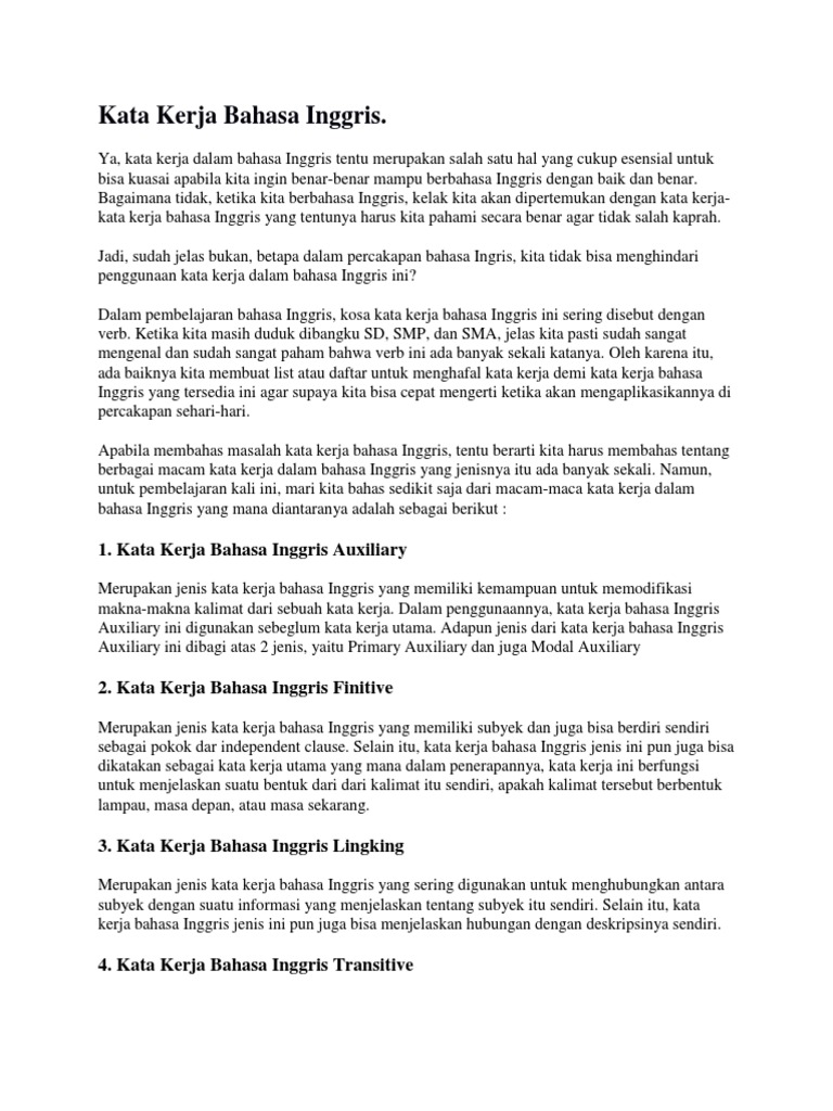 Macam Macam Kata Kerja Dalam Bahasa Inggris Hanibi