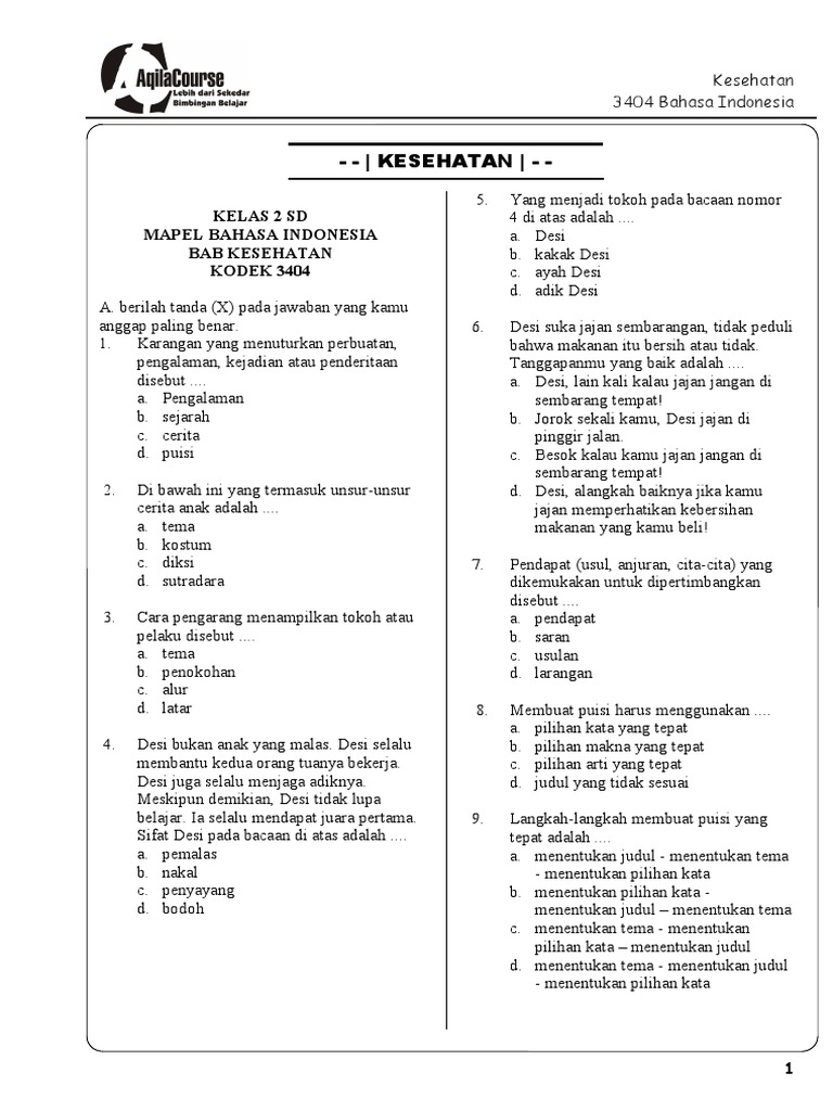Modul Bimbel Kelas 3 Ktsp 3404 B Indonesia Bab 4 Kesehatan