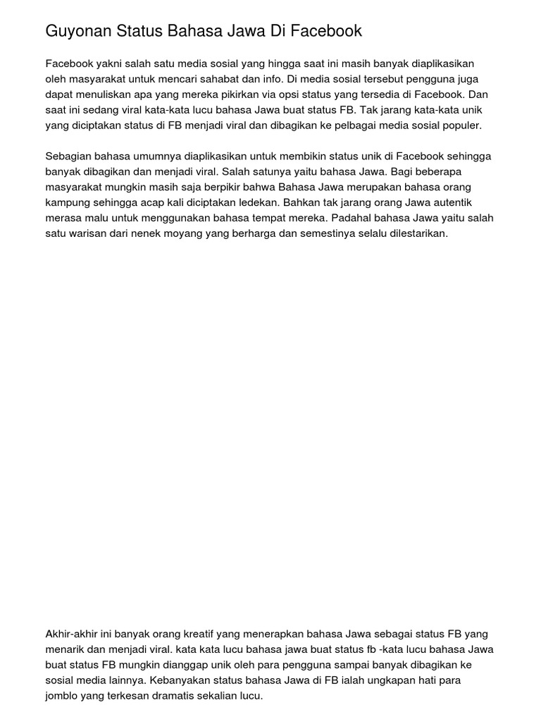 Guyonan Status Bahasa Jawa Di Facebook
