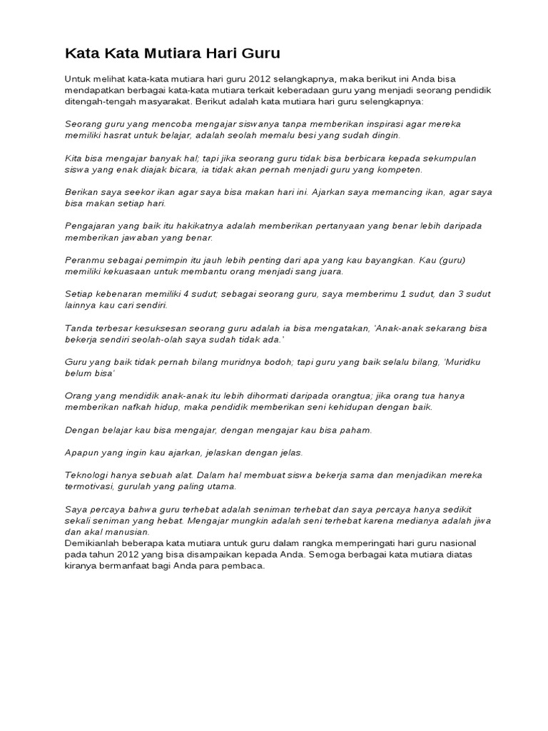 Kata bijak untuk guru ini berisi beberapa petuah dari orang orang bijak yang khusus ditujukan kepada seorang guru. Most popular articles related to kumpulan kata kata mutiara untuk hari guru tercinta dalam mengajar kumpulan kata mutiara bijak perpisahan kematian menyentuh hati 30 kata mutiara pagi hari yang cerah untuk motivasi.