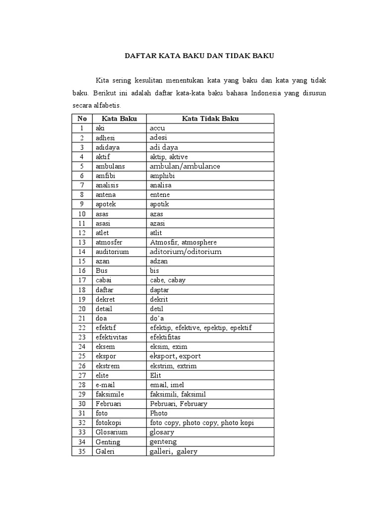 120 Contoh Kata Baku Dan Tidak Baku Beserta Artinya A Sampai Z