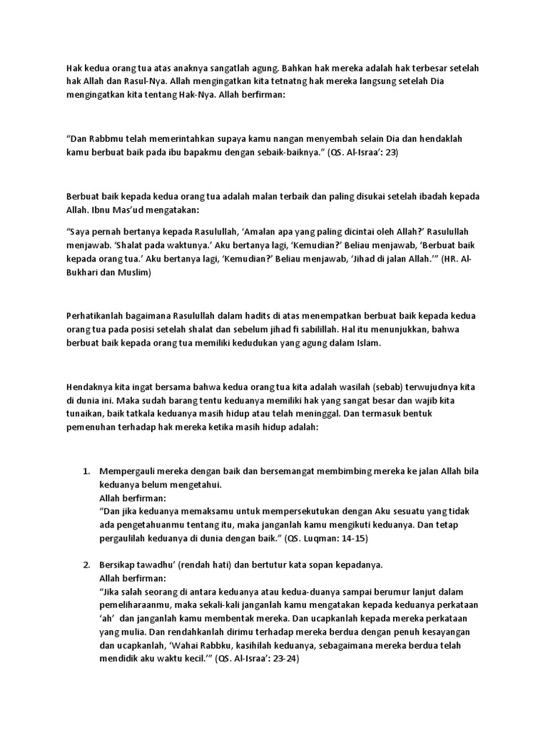 Ayat Al Qur An Dan Hadits Tentang Berbakti Kepada Kedua Orang Tua
