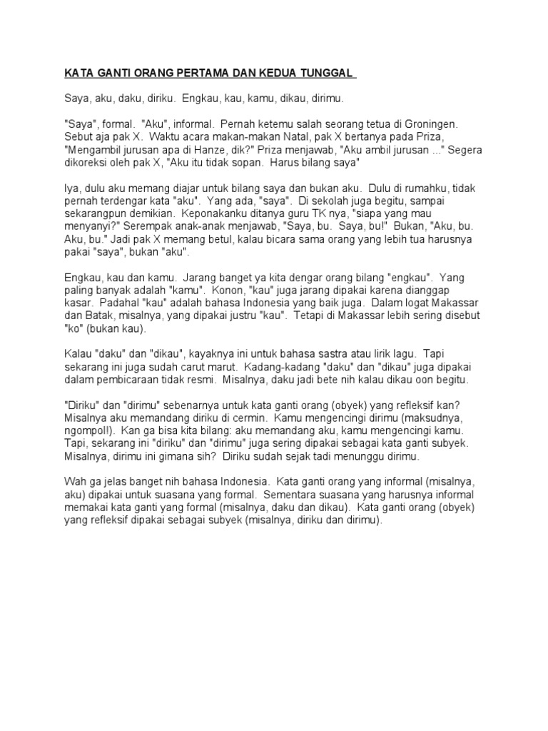 Kata Ganti Orang Pertama Dan Kedua Tunggal