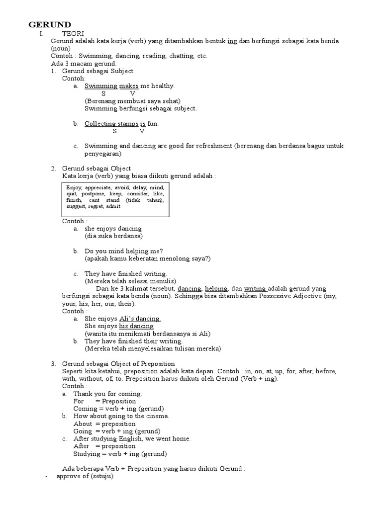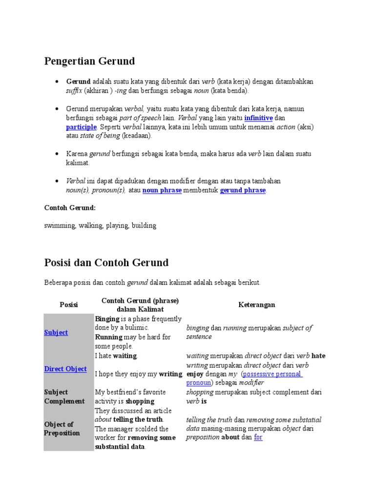 Gerund Kata Kerja Yang Dijadikan Katabenda Gerund Berfungsi Sebagai