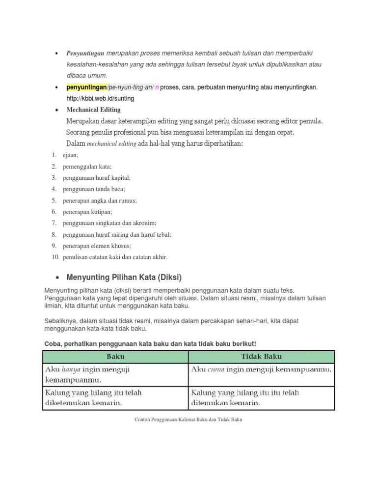 Penggunaan Kata Baku Dan Tidak Baku Beserta Keterangannya Buku