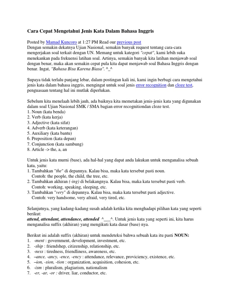 Cara Cepat Mengetahui Jenis Kata Dalam Bahasa Inggris