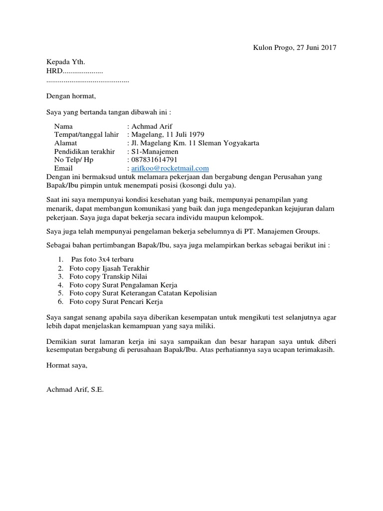 7 Contoh Surat Lamaran Kerja Resume Dreambegins Temukan Karir