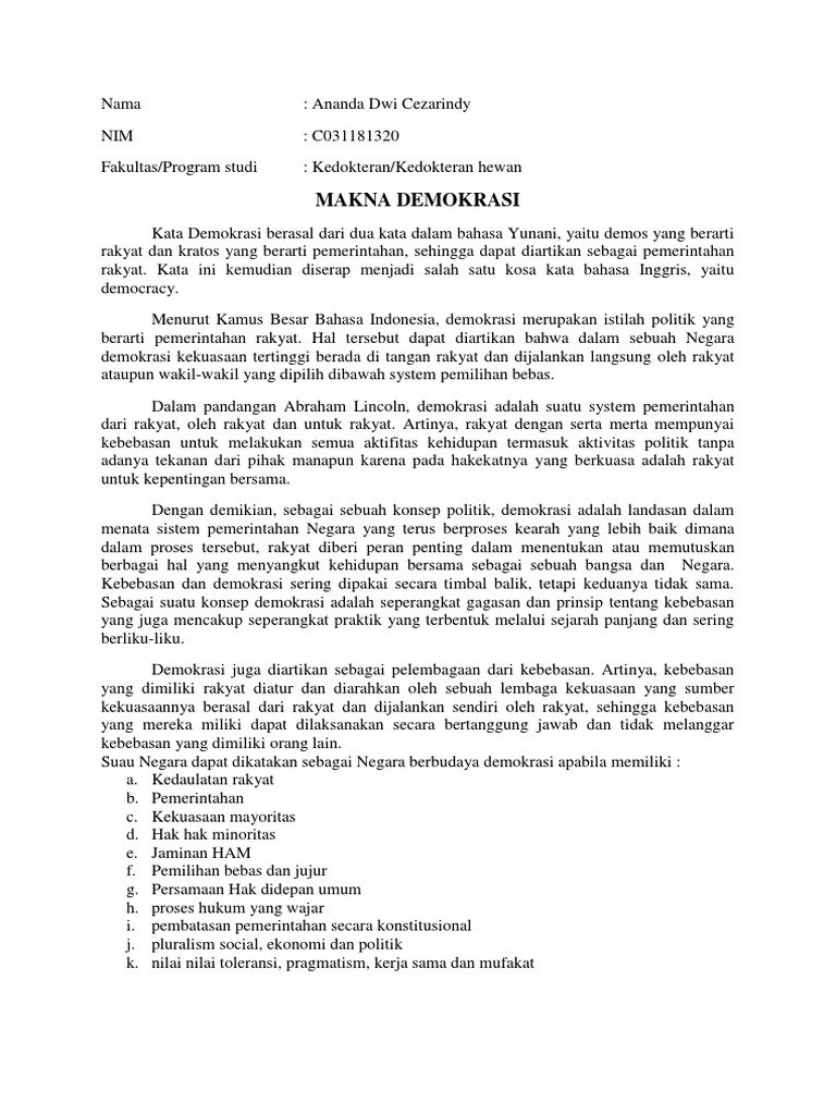 Doc Demokrasi Berasal Dari Bahasa Yunani Yaitu Demos Dan Kratos