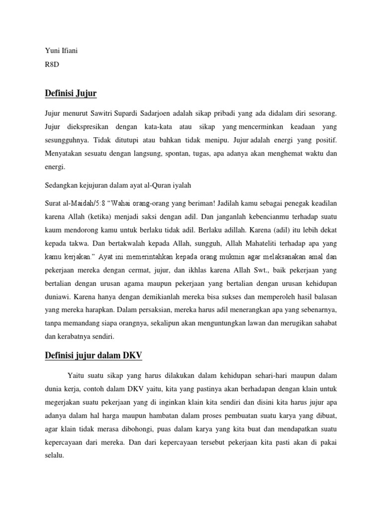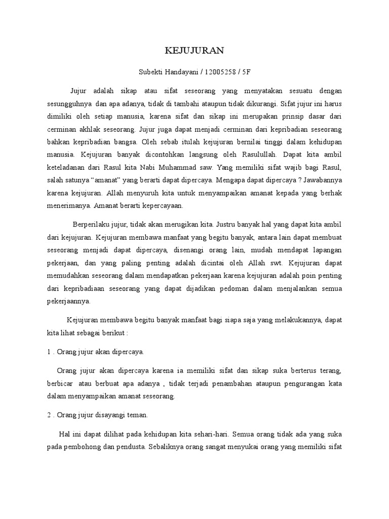 Kata kata jujur kejujuran adalah sebuah hal yang mulia dan berharga.