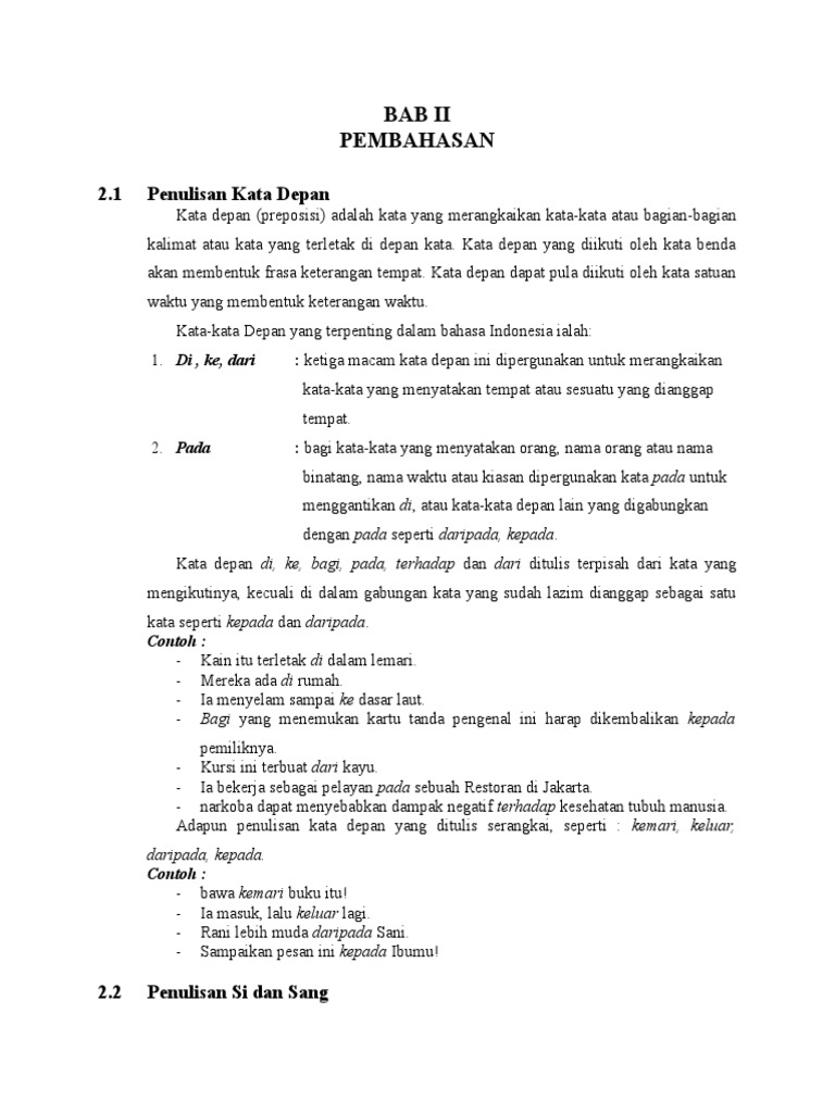 Kata depan dalam bahasa indonesia. Dalam bahasa indonesia ada 3 buah kata depan utama yaitu di ke dari. Penulisan kata depan kata ganti dan partikel sesuai eyd translationpapers bali july 6 2014 dalam penulisan ilmiah ataupun dalam penerjemahan teks formal pengetahuan akan ejaan yang disempurnakan dan penulisan yang benar sesuai dengan eyd sangat diperlukan. Yup ada banyak kata depan dalam bahasa inggris.
