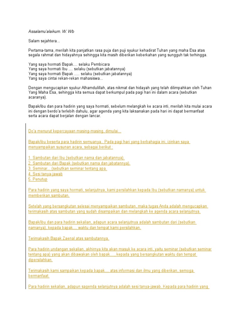 Naskah Teks Mc Pembawa Acara Setengah Resmi Video Mc Acara Halal