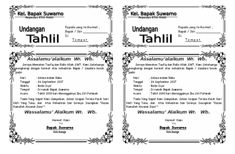 Contoh Undangan Tahlilan 40 Hari Meninggalnya