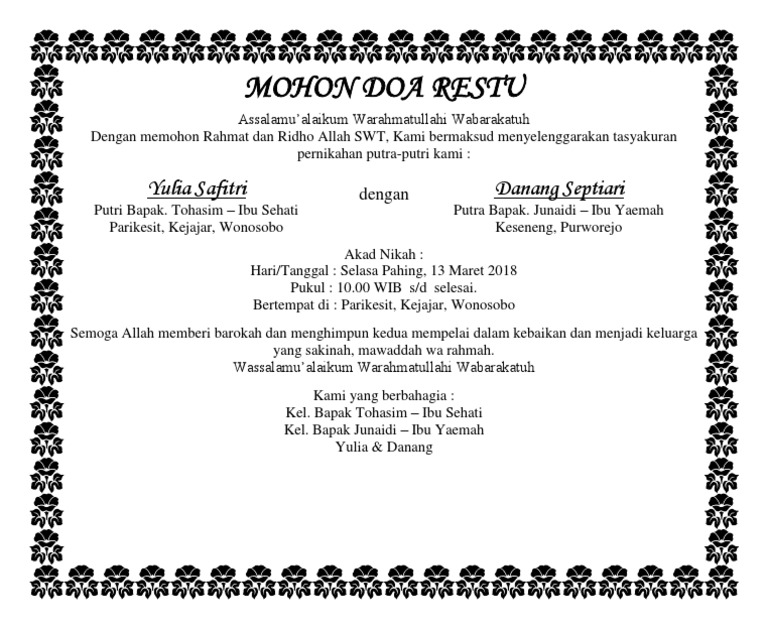 Contoh Mohon Doa Restu Pernikahan Terupdate 15 Contoh Surat Undangan