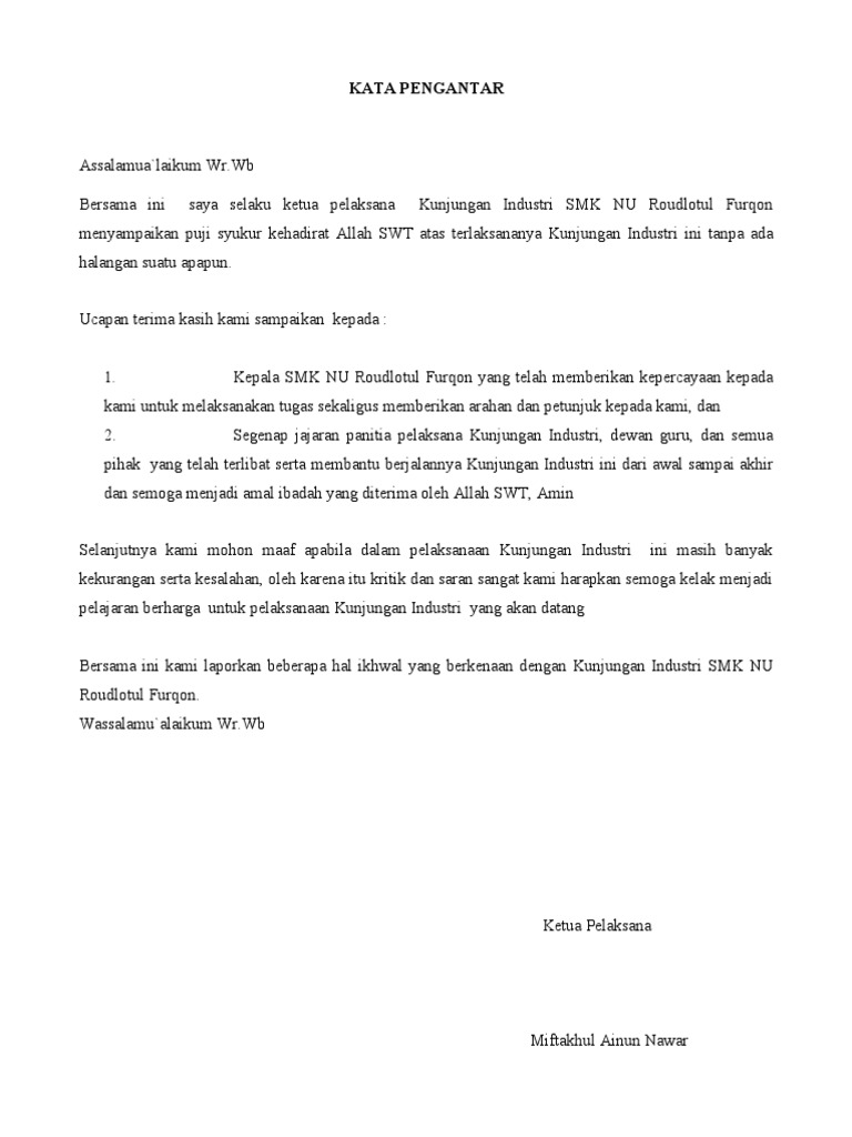 Contoh Kata Pengantar Laporan Kunjungan Industri Smk