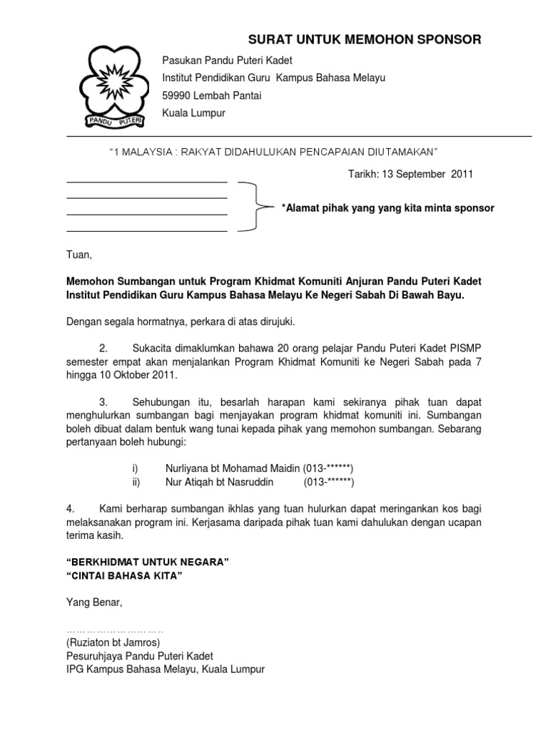 Contoh Surat Penaja Untuk Program Komuniti
