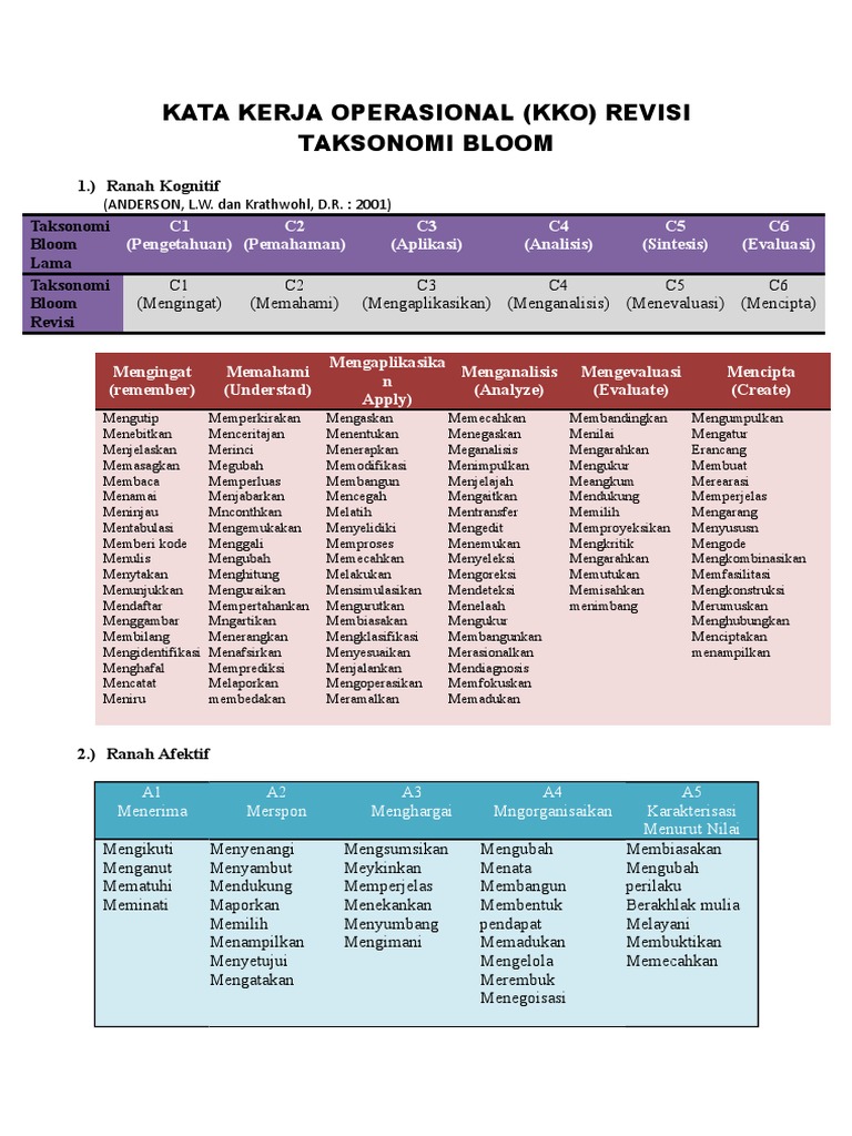 Kata kerja operasional bloom revisi. Pengetahuan ttg teori model struktur 3. Kata operasional pada setiap level domain untuk mempermudah guru dalam merumuskan pertanyaan yang digunakan sebagai instrument pengukur prestasi belajar siswa. Kata kerja operasional kko edisi revisi teori bloom author.