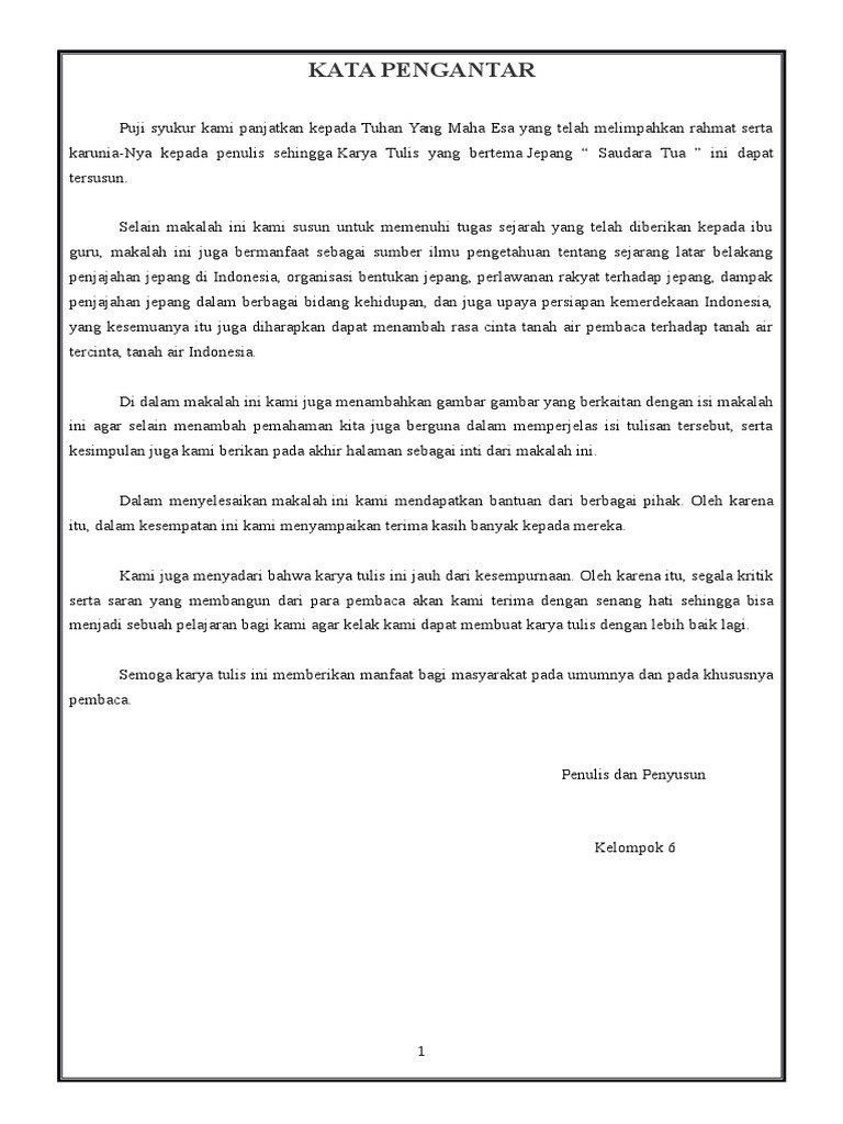 Kata pengantar makalah sejarah indonesia. Kepadanya juga lah kita meminta perlindungan dari kejelekan diri dari syetan yang senantiasa membisikkan kebatilan kepada hati kita. Hal ini karena karena prakata merupakan bagian dasar dari kelengkapan sebuah makalah. Kami menyadari bahwa didalam pembuatan makalah sejarah ini masih ada kekurangan sehingga kami berharap saran dan kritik dari pembaca sekalian khususnya dari guru mata pelajaran pkn agar dapat meningkatkan mutu dalam penyajian berikutnya.