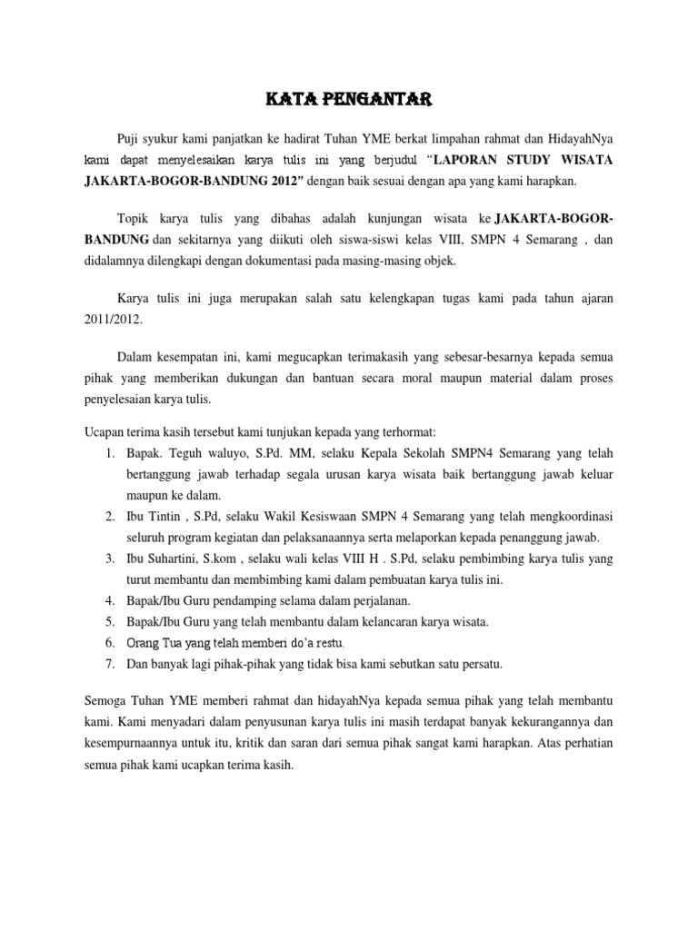 Contoh Kata Pengantar Laporan Study Tour Jakarta Bandung