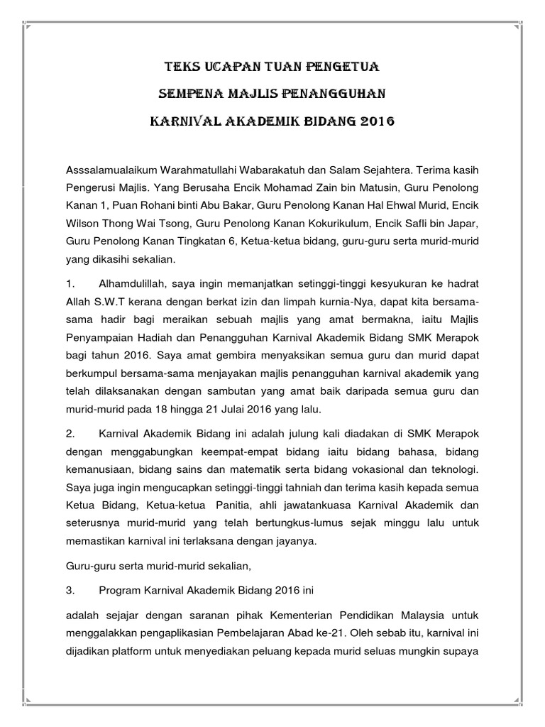 Teks Ucapan Majlis Penutupan Karnival Akademik 2012
