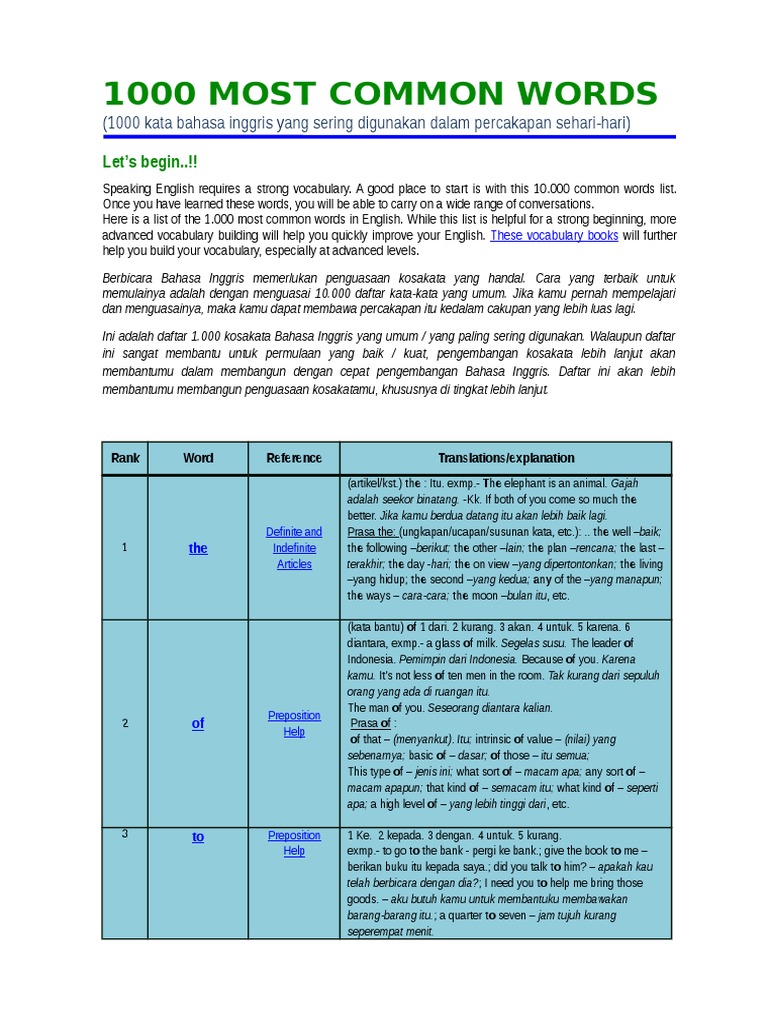 2000 kosakata bahasa inggris yang sering digunakan berikut ini adalah kosakata bahasa inggris yang paling umum digunakan. 1500 kosa kata bahasa inggris yang sering digunakan thank you for watching the video 1500 kosa kata bahasa inggris yang sering digunakan with learn english 360 channel. Total pastinya adalah sebanyak 2265 kosakata.