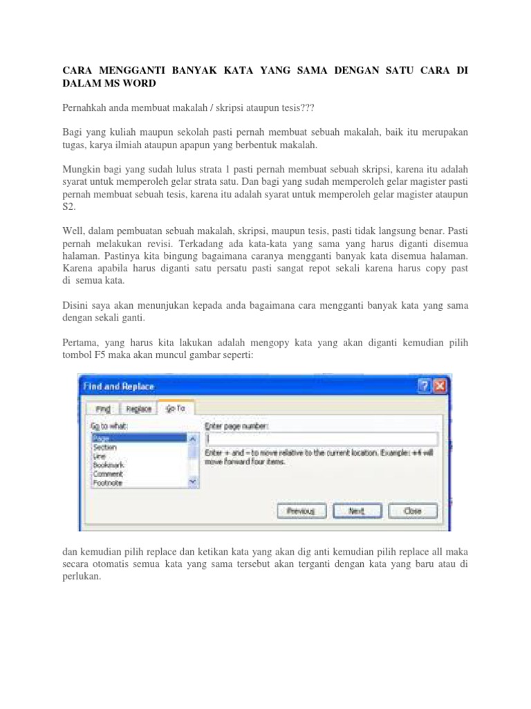 Untuk melakukan pencarian finding maupun penggantian replace dapat dilakukan dengan cara. Cara mengganti banyak kata yang sama dengan satu cara di dalam microsoft word monday september 16 2013 no comments pernahkah anda membuat makalah skripsi ataupun tesis. Kalian akan diarahkan ke sebuah kotak pop up yang bernama find and replace.