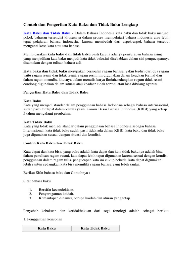 Pengertian kata baku dan tidak baku. Apa itu kata tidak baku. Berikut ini pengertian kata baku dan tidak baku beserta contohnya dapat anda baca di bawah ini. Berikut ini pengertian kata baku dan tidak baku beserta contohnya apa itu kata baku dan tidak baku.