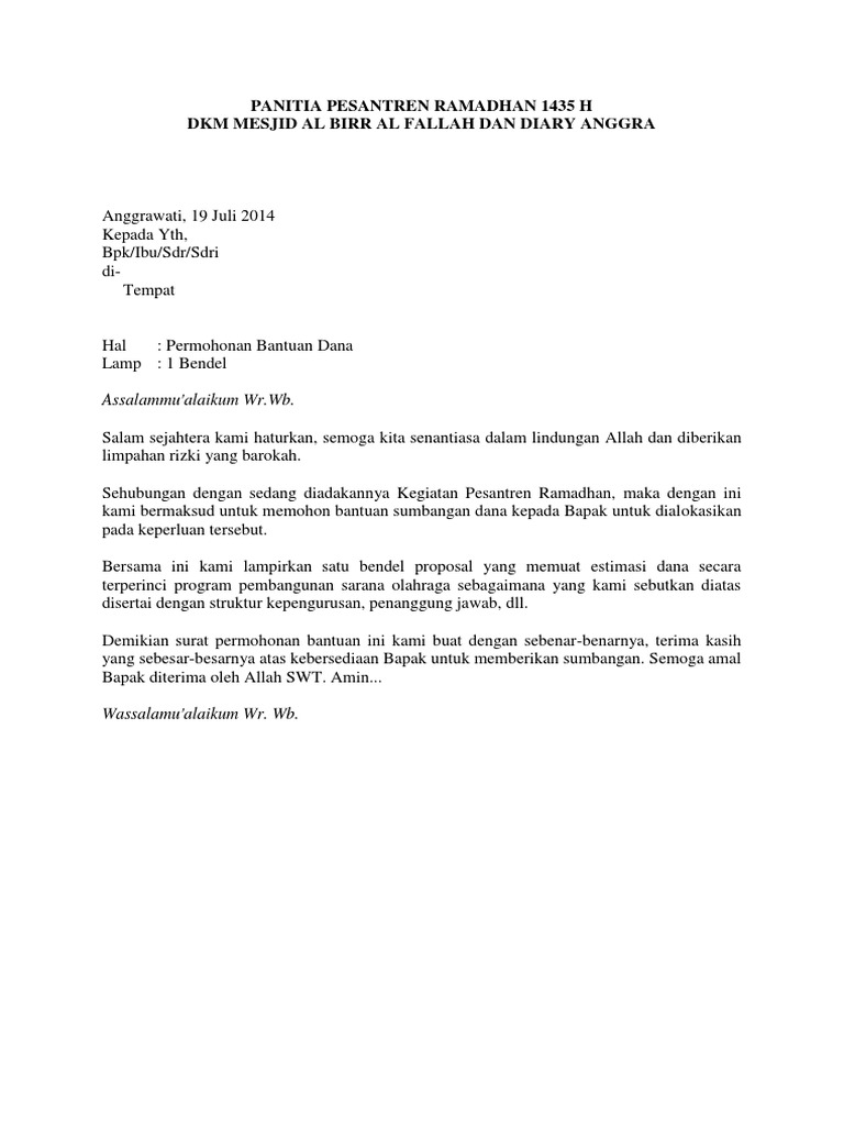 Contoh Kata Pengantar Proposal Bantuan Dana